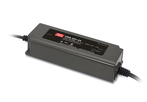 OWA-60U-24 AC-DC пылевлагозащищенный адаптер, американская вилка, функция управления светодиодами (LED driver) |