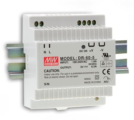 DR-60-5 AC-DC промышленный источник питания на DIN-рейку, пластиковый корпус T-формы |
