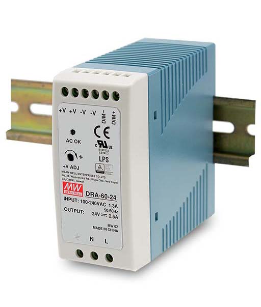 Главная→ | AC-DC источники питания→ | На DIN-рейку→ | 0-60 Вт→ | DRА-60 |